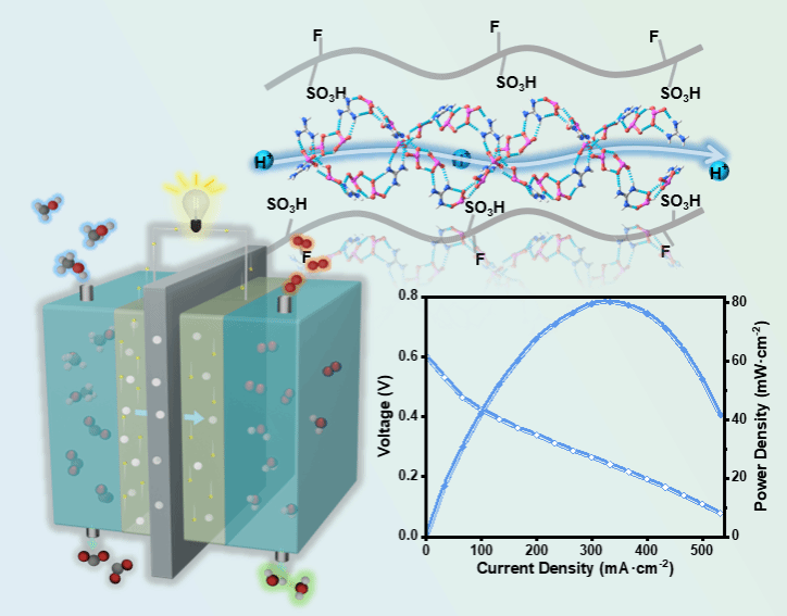 相關(guān)成果以“Arylsulfonate Ionic Hydrogen-Bonded Organic Frameworks Enable Highly Stable and Superprotonic Conductivity for Enhancing Direct Methanol Fuel Cells” 為題,發(fā)表在ACS Materials Letters上(IF = 9.6)上。陜西科技大學(xué)為論文唯一通訊單位,化學(xué)與化工學(xué)院2022級博士研究生白向田為該論文的第一作者,曹麗慧教授為論文唯一通訊作者。