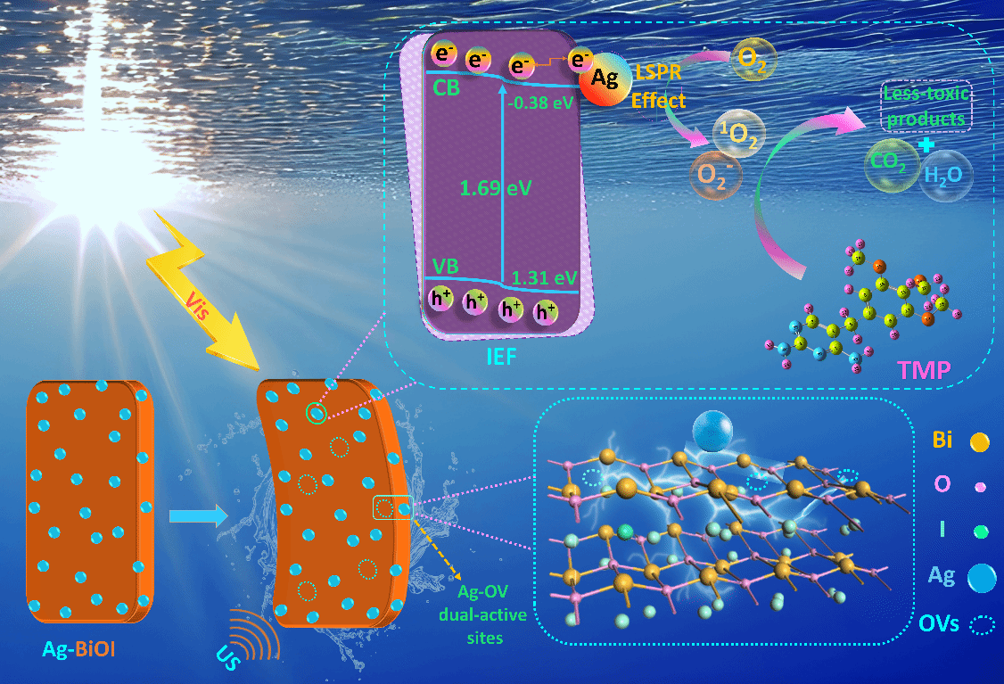 此外,利用銀負(fù)載鉍碘化物(Ag-BiOI)納米片提升三甲氧芐氨(TMP)降解性能。通過引入氧空位(OVs)和銀,顯著提高了催化劑的活性,60分鐘內(nèi)降解效率達(dá)到了97%。這一結(jié)果表明,氧空位和銀作為雙重活性位點在氧化自由基的生成中發(fā)揮了關(guān)鍵作用,從而促進(jìn)了TMP的高效降解。進(jìn)一步的研究評估了所合成的鉍基復(fù)合材料在實際廢水中的應(yīng)用效果。實驗結(jié)果顯示,該材料在實際廢水中的催化降解性能顯著,表明其在復(fù)雜藥品廢水處理中的潛力。通過優(yōu)化催化劑濃度和反應(yīng)溫度等關(guān)鍵參數(shù),顯著提高了廢水中污染物的去除效率,為實際應(yīng)用中的抗生素污染治理提供了有效的技術(shù)支持。