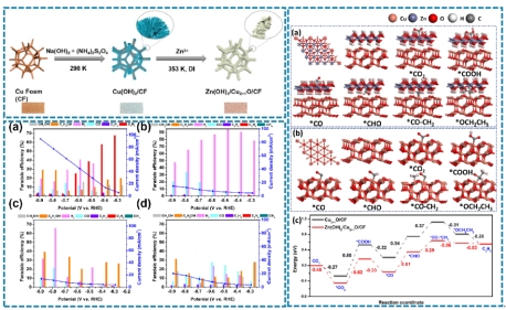 圖3. 電催化CO2還原為C2H6的性能和機(jī)理