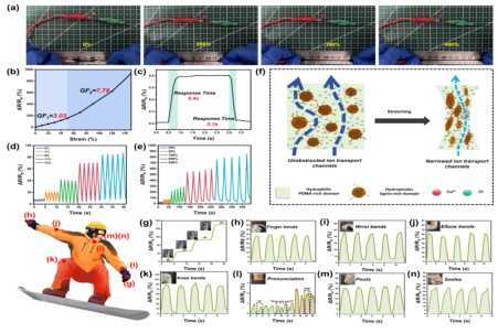 游翔宇副教授等利用溶劑交換法開發(fā)了一種木質(zhì)素/聚(N,N-二甲基丙烯酰胺)和海藻酸鈉/Ca2+的雙交聯(lián)網(wǎng)絡(luò)木質(zhì)素基水凝膠。得益于多層次的剛性網(wǎng)絡(luò)和能量耗散結(jié)構(gòu),這種兼具高模量、超韌性和優(yōu)異傳感能力的木質(zhì)素基水凝膠,在極限運(yùn)動保護(hù)和可穿戴傳感器中顯示出應(yīng)用潛力。該研究發(fā)表于國際頂級期刊Advanced Functional Materials。