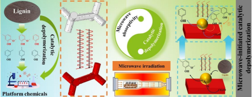 王文亮副教授等提出了一種微波響應(yīng)型催化劑,并成功用于克量級木質(zhì)素解聚蒸氣的微波輔助催化重整,為從資源豐富的木質(zhì)素中規(guī)?;@取關(guān)鍵的酚類和芳香烴類平臺化合物提供了行之有效的途徑。該研究發(fā)表于國際頂級期刊Applied Catalysis B: Environmental和Chemical Engineering Journal。