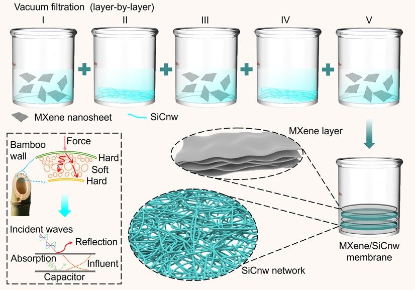 圖1 MXene/SiCnw復(fù)合薄膜的設(shè)計(jì)和制備示意圖