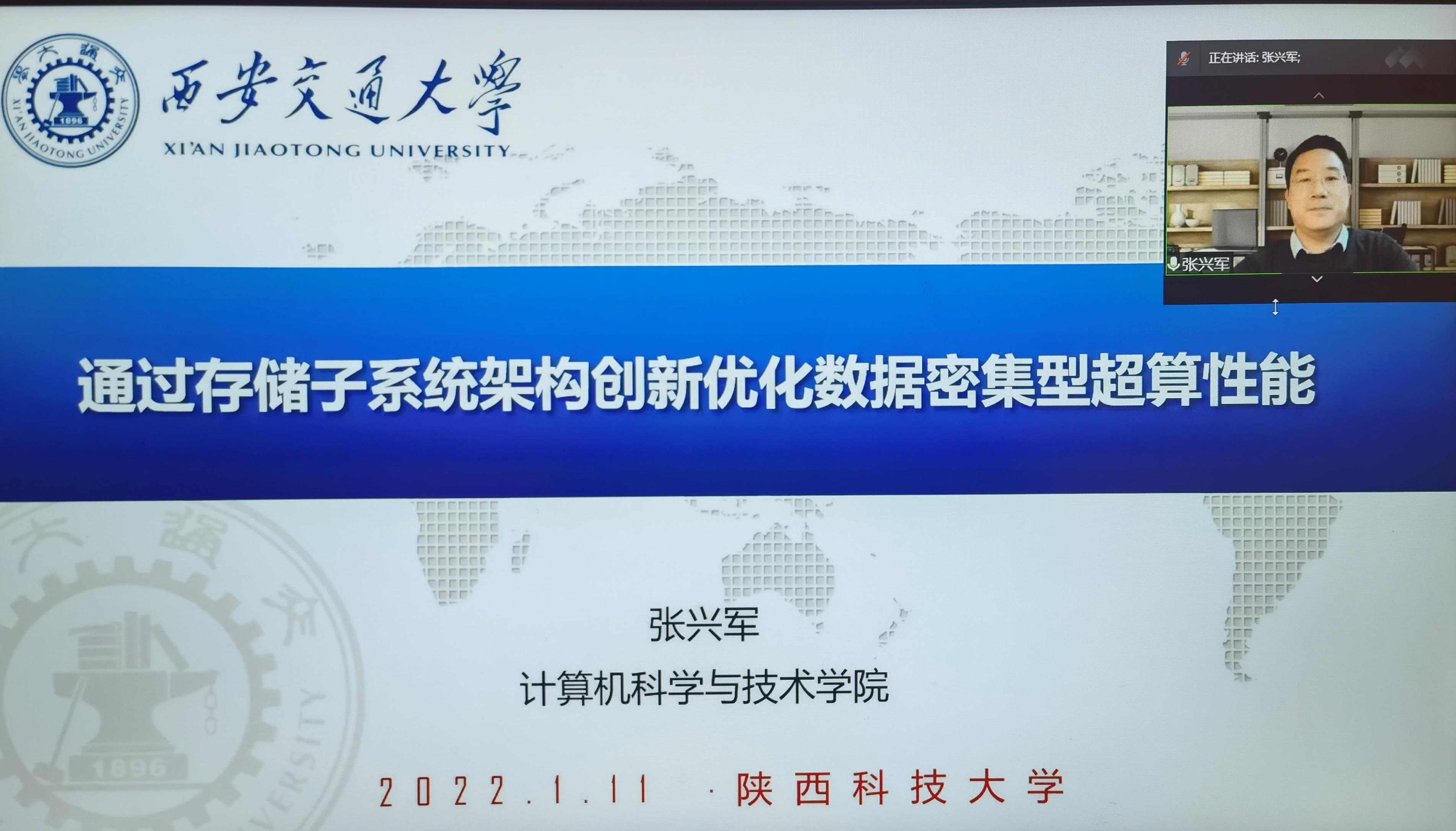 1月11日晚上,應(yīng)電子信息與人工智能學(xué)院、科技處、前沿院邀請(qǐng),西安交通大學(xué)張興軍教授做客我?!扒把乜茖W(xué)報(bào)告”,作了題為“通過存儲(chǔ)子系統(tǒng)架構(gòu)創(chuàng)新優(yōu)化數(shù)據(jù)密集型超算性能”的線上學(xué)術(shù)報(bào)告。電智學(xué)院相關(guān)專業(yè)教師和研究生參加此次報(bào)告會(huì),本次報(bào)告會(huì)由電智學(xué)院院長(zhǎng)助理孫連山主持。