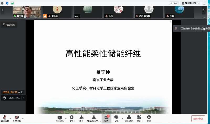 1月3日下午,受我校輕工科學與工程學院、科技處及前沿院邀請,南京工業(yè)大學教授暴寧鐘做客我校“前沿科學報告”,作了題為“高性能柔性儲能纖維”的線上學術(shù)報告。輕工學院部分教師及研究生聆聽了本次報告。報告由我校研究生院院長陸趙情主持。