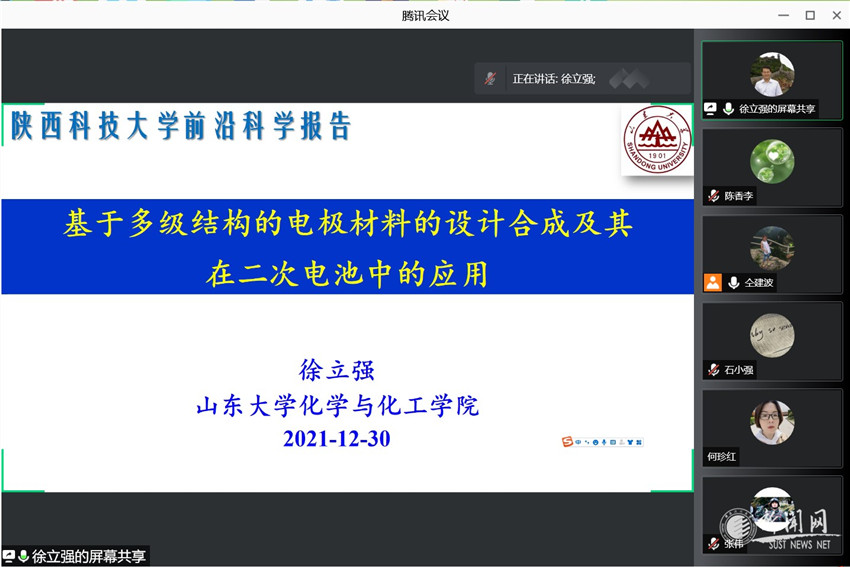 12月30日上午,應(yīng)我??萍继帯⑶把卦杭盎瘜W(xué)與化工學(xué)院邀請(qǐng),山東大學(xué)徐立強(qiáng)教授做客我?!扒把乜茖W(xué)報(bào)告”,作了題為“基于多級(jí)結(jié)構(gòu)材料的設(shè)計(jì)合成及其在二次電池中的應(yīng)用”的報(bào)告。報(bào)告會(huì)由化工學(xué)院副院長(zhǎng)仝建波主持,學(xué)院相關(guān)專業(yè)教師、研究生聆聽(tīng)了此次報(bào)告會(huì)。