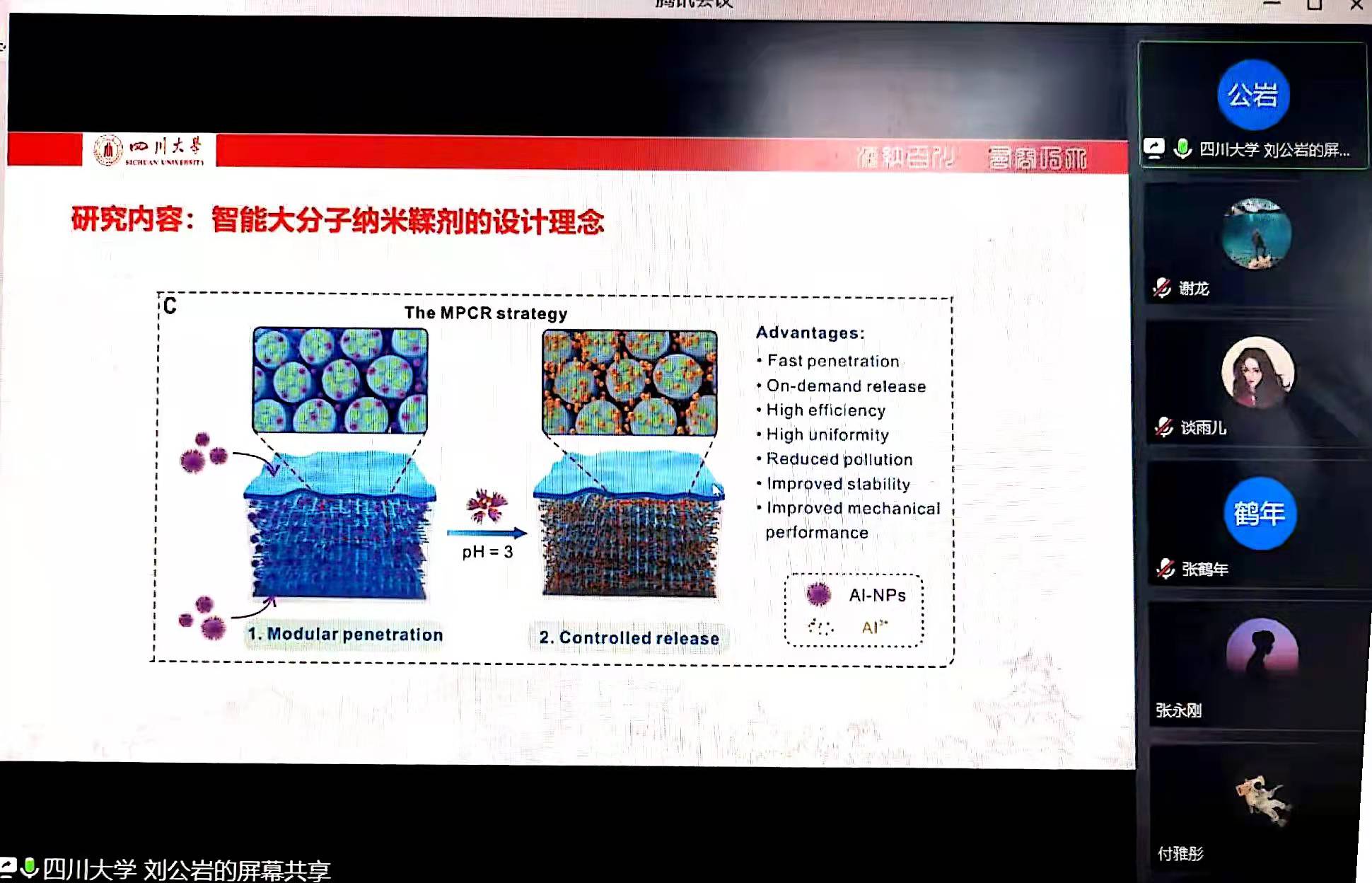 12月23日下午,受輕工科學(xué)與工程學(xué)院、科技處及前沿院邀請,四川大學(xué)劉公巖教授做客我校“前沿科學(xué)報(bào)告”,作了題為“皮膠原纖維的高效鞣制及其作為濾膜材料的探究研究”的線上學(xué)術(shù)報(bào)告。報(bào)告由輕工學(xué)院副院長劉國棟主持,學(xué)院相關(guān)專業(yè)教師及研究生參加了本次學(xué)術(shù)報(bào)告會。
