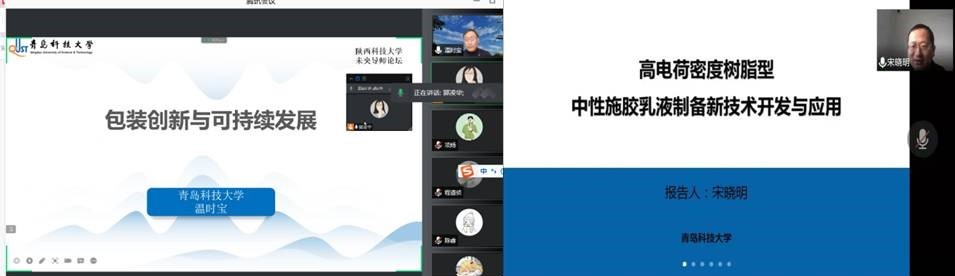 1月24—25日,應(yīng)輕工科學(xué)與工程學(xué)院和研究生院邀請(qǐng),青島科技大學(xué)溫時(shí)寶、宋曉明副教授做客我院“未央導(dǎo)師論壇”,分別作了題為“包裝創(chuàng)新與可持續(xù)發(fā)展”“高電荷密度樹脂型中性施膠乳液制備新技術(shù)開發(fā)與應(yīng)用”的報(bào)告。報(bào)告會(huì)由我院主管科研劉院長(zhǎng)主持,學(xué)院相關(guān)教師和研究生參加了本次報(bào)告會(huì)。因受疫情影響,本次報(bào)告采取線上會(huì)議方式進(jìn)行。
