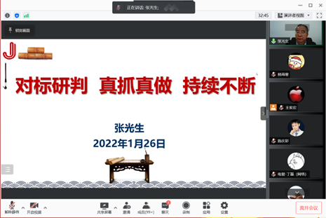 1月26日下午,應(yīng)我校教務(wù)處和環(huán)境科學(xué)與工程學(xué)院邀請,江南大學(xué)校長助理張光生教授做客我校第65期“教育教學(xué)論壇”,作題為“對標研判、真抓真做、持續(xù)不斷”的線上報告。報告會由副校長王學(xué)川主持,教務(wù)處全體成員、環(huán)境學(xué)院全體教師、各學(xué)院(部)教學(xué)工作負責人及教師代表等近200人參加了報告會。