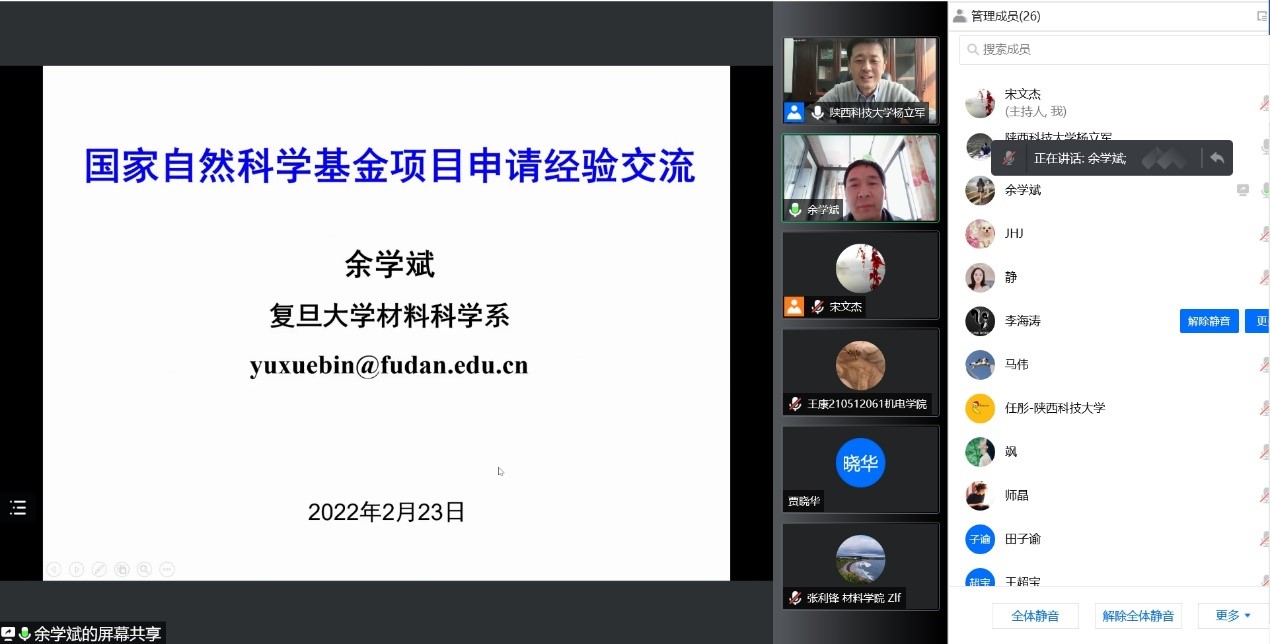 最后,楊立軍進行了總結(jié),對余學斌的精彩報告表示了感謝,并邀請余老師來陜西科技大學進行指導交流。同時,楊立軍勉勵各位教師能夠繼續(xù)完善打磨基金申請書。此次報告對進一步提升教師國家自然科學基金申報質(zhì)量產(chǎn)生了積極作用。