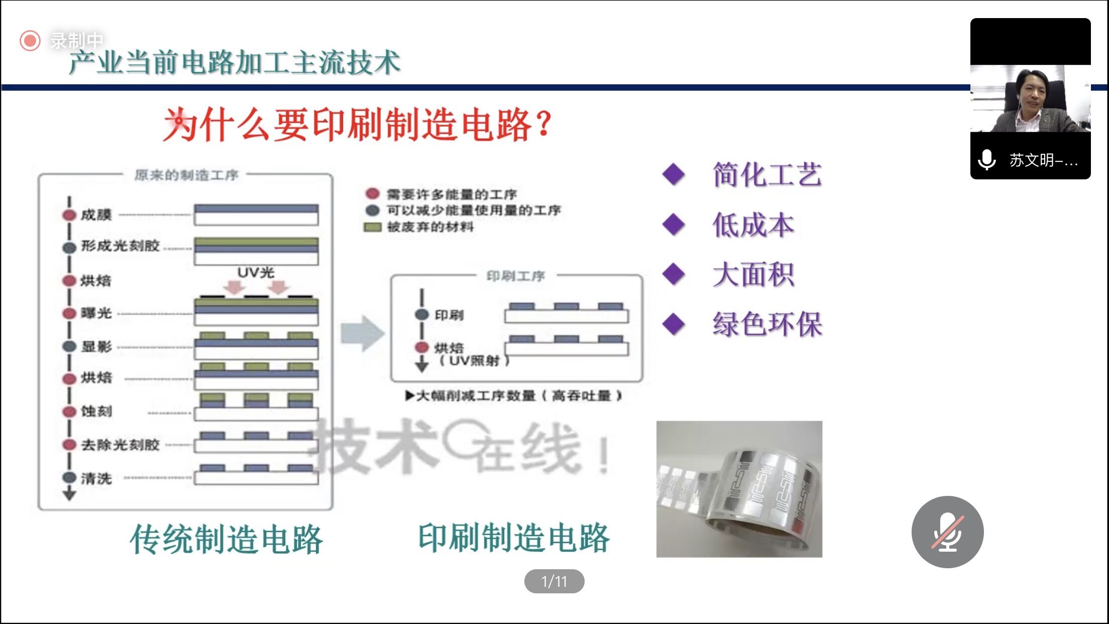 近幾年柔性印刷電子技術(shù)與產(chǎn)業(yè)在中國(guó)蓬勃發(fā)展,印刷作為一種實(shí)現(xiàn)大面積柔性電子與光電子產(chǎn)品的低成本綠色制造技術(shù),正在成為電子制造的一個(gè)新業(yè)態(tài)。蘇文明研究員基于印刷柔性電子研究,聚焦國(guó)家戰(zhàn)略產(chǎn)業(yè)技術(shù)需求,致力于前沿產(chǎn)業(yè)應(yīng)用技術(shù)開發(fā)。報(bào)告中蘇文明研究員闡明了電磁屏蔽、超低方阻、透明天線、除冰防霧等關(guān)鍵材料的研發(fā)與技術(shù)瓶頸的突破。并以印刷QLED發(fā)光顯示技術(shù)研究為突破口,對(duì)“噴墨打印QD層、QLED交聯(lián)傳輸材料、小分子熱交聯(lián)HTL材料、低溫交聯(lián)策略”做出的原創(chuàng)性成果進(jìn)行了介紹,實(shí)現(xiàn)了技術(shù)方案工程化示范與前沿探索,完成了對(duì)傳統(tǒng)加工技術(shù)的超越。