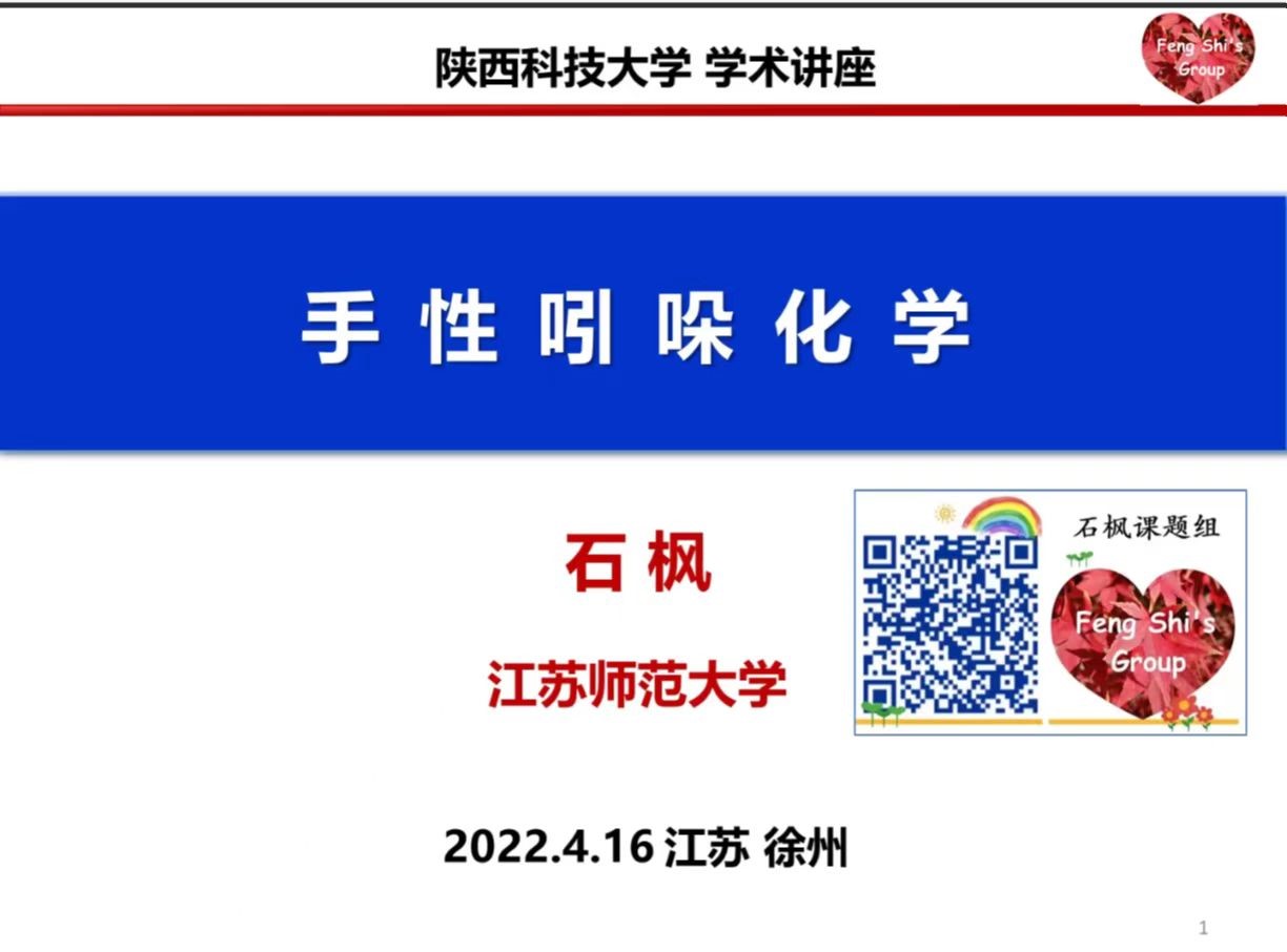 石楓教授從構(gòu)建手性雜環(huán)骨架、手性吲哚骨架的意義出發(fā),分析了手性吲哚化學(xué)的研究現(xiàn)狀,提出了實(shí)現(xiàn)新型手性吲哚骨架的高效、高選擇性構(gòu)建的思路和策略。石教授以四類(lèi)吲哚平臺(tái)分子的設(shè)計(jì)和應(yīng)用為例闡明了研究策略,即通過(guò)引入特定官能團(tuán)、設(shè)計(jì)催化不對(duì)稱反應(yīng),實(shí)現(xiàn)新型骨架的構(gòu)建,在此過(guò)程中也探究了反應(yīng)機(jī)制和催化模式,并對(duì)其生物學(xué)活性進(jìn)行研究。