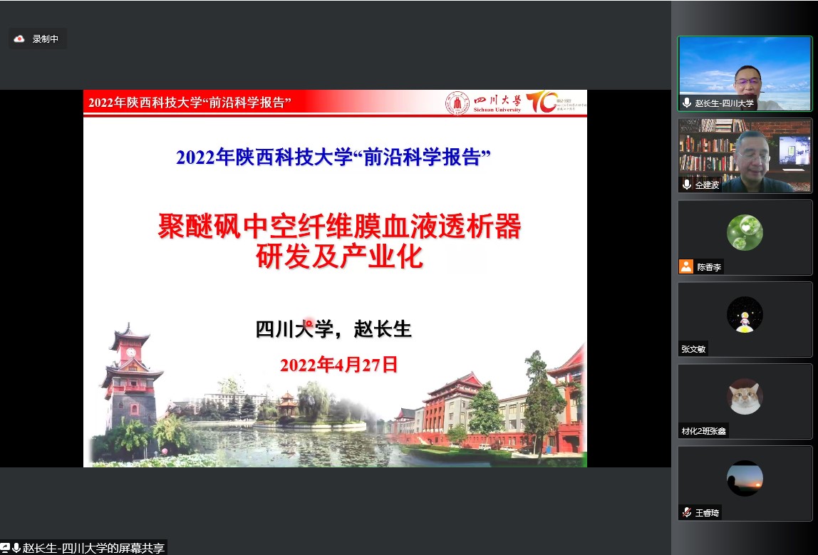 趙長生教授的研究工作打破了國外產(chǎn)品的技術(shù)壟斷,為中國以及世界的廣大終末期腎病患者帶來更多生的希望,具有非常重要的科學意義和應(yīng)用價值。報告結(jié)束后,趙長生教授對師生們提出的問題進行了詳細的解答。趙長生教授的報告不但為廣大師生帶來了先進的前沿科學,同時也讓師生們進一步認知了科研與產(chǎn)業(yè)化的關(guān)系:基礎(chǔ)研究服務(wù)于產(chǎn)業(yè)應(yīng)用,產(chǎn)業(yè)應(yīng)用支撐基礎(chǔ)研究。