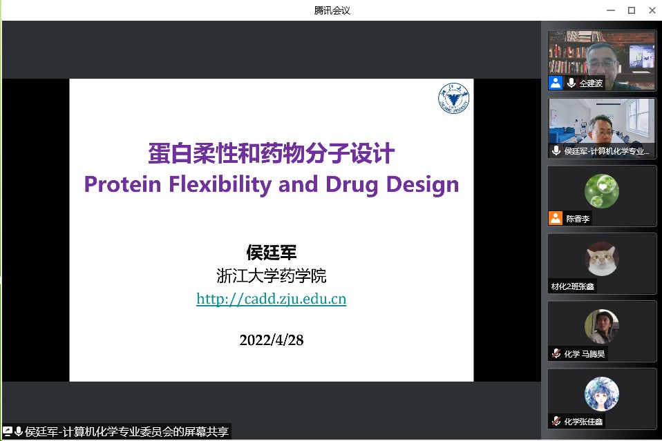 4月28日,應(yīng)我校科技處、前沿院及化學(xué)與化工學(xué)院邀請,浙江大學(xué)侯廷軍教授做客我?!扒把乜茖W(xué)報(bào)告”,作了題為“蛋白柔性和藥物分子設(shè)計(jì)”的報(bào)告。報(bào)告會(huì)由化學(xué)與化工學(xué)院副院長仝建波主持,學(xué)院相關(guān)專業(yè)教師、研究生聆聽了此次報(bào)告會(huì)。