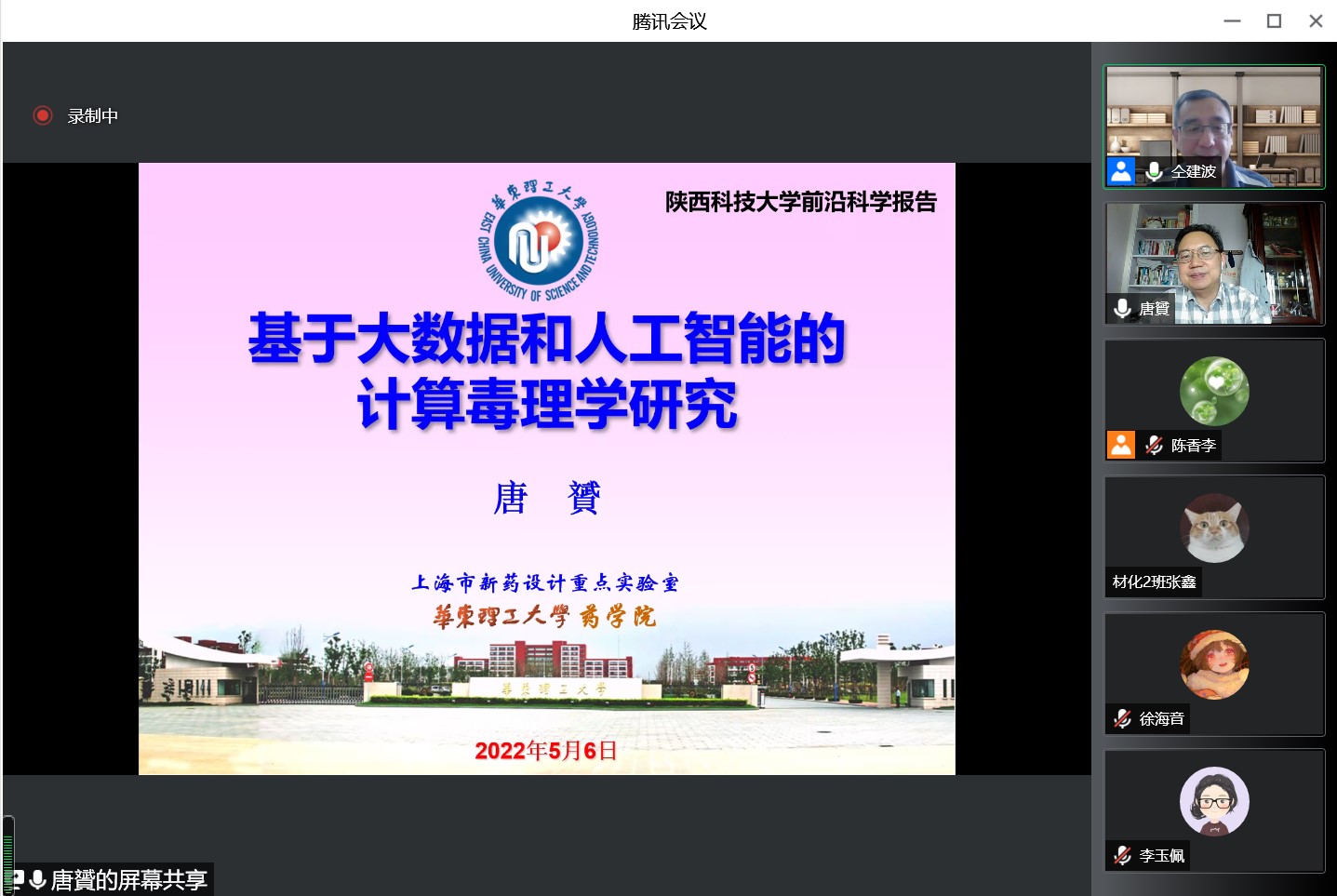 5月6日,應(yīng)我??萍继帯⑶把卦杭盎瘜W與化工學院邀請,昆明理工大學易倫朝教授和華東理工大學唐贇教授做客我?!扒把乜茖W報告”,作了題為“代謝組學數(shù)據(jù)處理關(guān)鍵方法研究及其在醫(yī)藥領(lǐng)域的應(yīng)用”和“基于大數(shù)據(jù)和人工智能的計算毒理學研究”的報告。報告會由化學與化工學院副院長仝建波主持,學院相關(guān)專業(yè)教師、研究生聆聽了此次報告會。