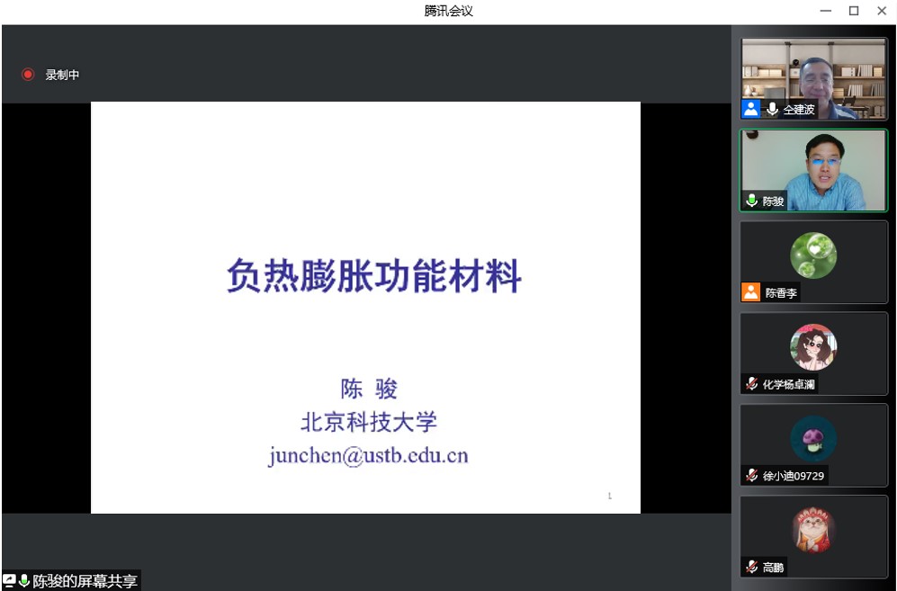 陳駿教授從負熱膨脹(NTE)的定義、潛在應用等方面出發(fā),介紹了以ScF3化合物為模型,從局域結構的角度研究了聲子驅動型NTE機制。發(fā)現(xiàn)了NTE新化合物Cu2P2O7,通過中子衍射和EXAFS揭示了氧原子橫向振動對其產生強NTE的重要作用。提出通過離子或分子脫嵌調控框架化合物熱膨脹的新方法。發(fā)現(xiàn)了一些新的磁性NTE功能材料,如亞鐵磁性Tb(Co,Fe)2、鐵磁性(Sc,Ti)Fe2和(Zr,Hf,Nb)Fe2、反鐵磁性Mn3Ge。