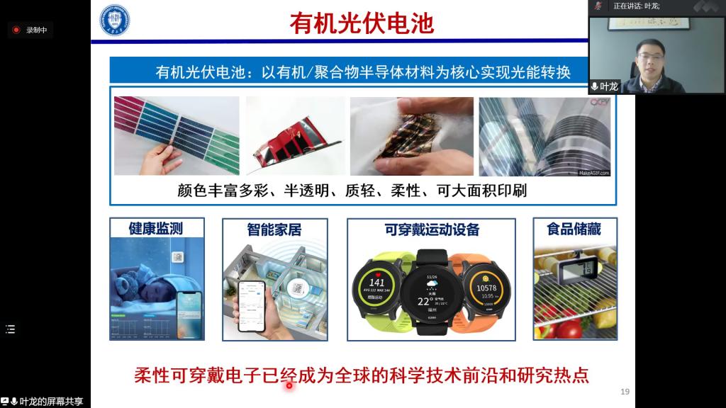 5月9日下午,應(yīng)我校輕工科學(xué)與工程學(xué)院、科技處及前沿院邀請(qǐng),天津大學(xué)葉龍教授做客我?!扒把乜茖W(xué)報(bào)告”,以“可拉伸柔性有機(jī)光伏器件的機(jī)遇與挑戰(zhàn)”為題進(jìn)行線上學(xué)術(shù)報(bào)告。報(bào)告由輕工學(xué)院副院長劉國棟主持,學(xué)院及其他相關(guān)專業(yè)教師、研究生參加了此次報(bào)告會(huì)。