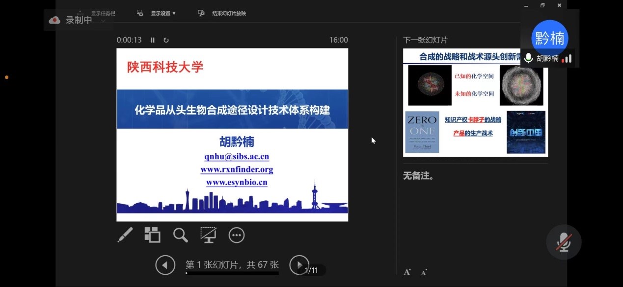 報(bào)告最后,杜一平教授就師生們對(duì)于生物毒素?zé)晒夥治觥悠非疤幚砑夹g(shù)、以及LED燈激發(fā)的熒光分析儀器的結(jié)構(gòu)和光路構(gòu)建等問題進(jìn)行了詳細(xì)的討論和解答。胡黔楠研究員就如何通過所建立的數(shù)據(jù)分析工具篩選生物合成途徑、合成可行性、數(shù)據(jù)庫(kù)使用方法等問題與師生們進(jìn)行了交流討論。馮國(guó)強(qiáng)教授與師生交流討論了腫瘤小鼠建模、熒光分子探針設(shè)計(jì)、熒光基團(tuán)調(diào)控等問題。