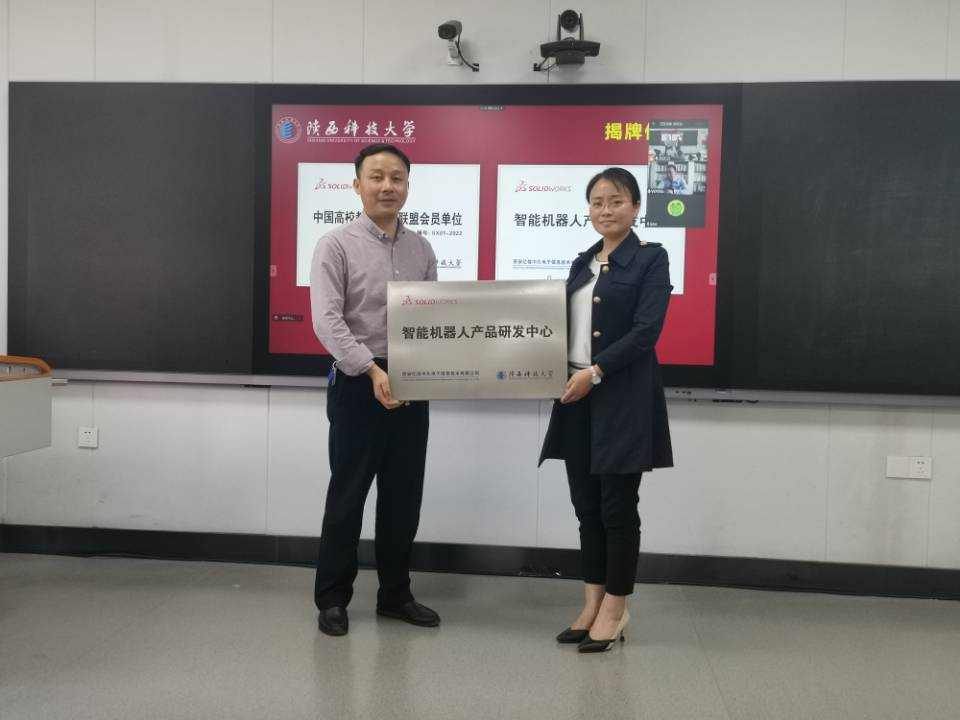 陳陽代表公司向機電學院捐贈SolidWorks正版軟件授權(quán)點130個,SolidWorks國際認證考試免費名額10個。王艷代表CAXA向機電學院機器人工程專業(yè)捐贈CAXA3D教育版軟件永久授權(quán)5個,用于教育培訓和機器人研究開發(fā)。
