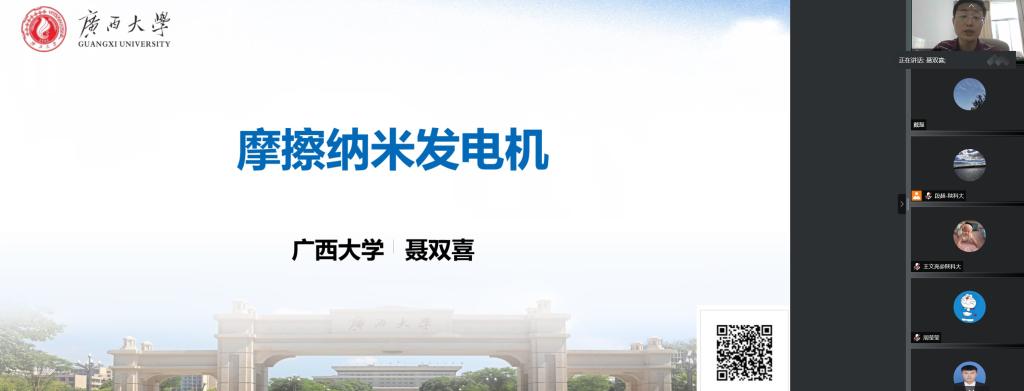 5月31日下午,應(yīng)我校輕工科學(xué)與工程學(xué)院、科技處及前沿院邀請(qǐng),廣西大學(xué)聶雙喜教授做客我?!扒把乜茖W(xué)報(bào)告”,進(jìn)行了以“摩擦納米發(fā)電機(jī)”為題的線上學(xué)術(shù)報(bào)告。報(bào)告會(huì)由輕工學(xué)院副院長(zhǎng)劉國(guó)棟主持,學(xué)院及相關(guān)專業(yè)教師、研究生參加了此次報(bào)告會(huì)。