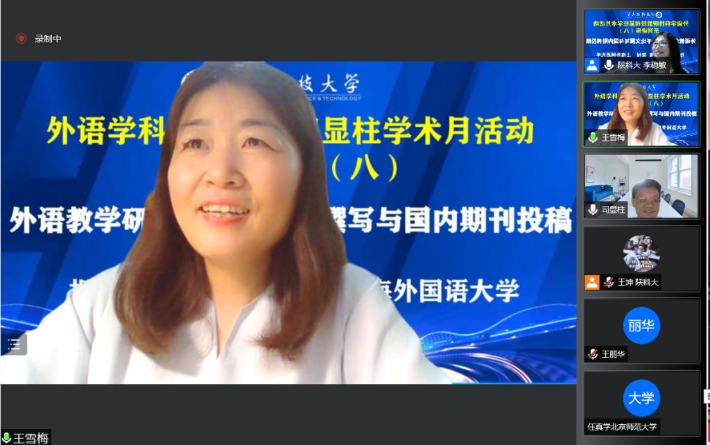 6月29日,上海外國語大學(xué)王雪梅教授做客我?!?span style="text-indent: 28px;">前沿科學(xué)報告”,做了題為“外語教學(xué)研究高水平論文撰寫與國內(nèi)期刊投稿”的線上報告。報告由我校外語學(xué)科特聘教授司顯柱主持,參會人數(shù)達(dá)300人。文理學(xué)院6月組織開展的外語學(xué)科特聘教授司顯柱學(xué)術(shù)活動系列講座,旨在充分發(fā)揮我校特聘教授的學(xué)術(shù)引領(lǐng)和資源共享作用,推動我校外語學(xué)科內(nèi)涵發(fā)展。