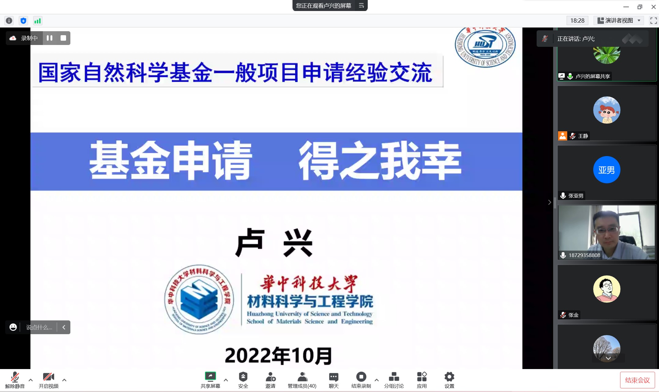 最后,盧興教授與預(yù)申報(bào)2023年度國(guó)家自然基金項(xiàng)目的教師進(jìn)行了互動(dòng)交流,針對(duì)大家提出的問(wèn)題做出了詳細(xì)的解答和指導(dǎo)。
