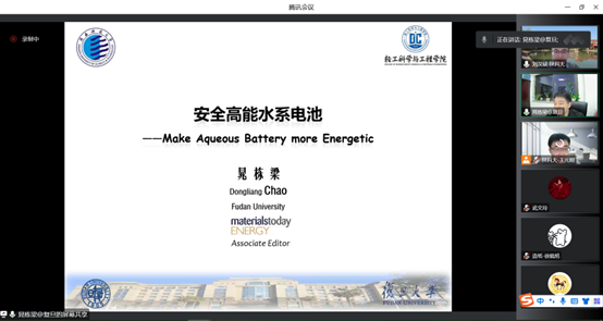 11月9日,應(yīng)我校輕工科學(xué)與工程學(xué)院(柔性電子學(xué)院)、科技處及前沿院邀請(qǐng),復(fù)旦大學(xué)晁棟梁教授做客我校“前沿科學(xué)報(bào)告”,作了題為“安全高能水系電池”的線上學(xué)術(shù)報(bào)告。報(bào)告會(huì)由輕工學(xué)院副教授劉漢斌主持,學(xué)院相關(guān)專(zhuān)業(yè)教師、研究生參加了此次報(bào)告會(huì)。