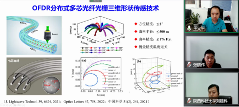 報告會上,王義平教授從其所在課題組利用飛秒激光、紫外激光、CO2激光、3D打印、電弧放電等技術(shù)制備豐富多彩的新型光纖微結(jié)構(gòu)器件開始,揭示了各種新型光纖微結(jié)構(gòu)器件的物理傳感機(jī)理和其在極端環(huán)境、航空航天、人工智能、生命健康等領(lǐng)域的應(yīng)用。特別是從面向國家重大科技需要、社會服務(wù)和人民生命健康方面,展示了其課題組10年來在超高溫、超高壓等極端環(huán)境下利用藍(lán)寶石光纖光柵實現(xiàn)航空發(fā)動機(jī)、高速飛行器、核電站檢測等智能工程結(jié)構(gòu)多物理場實時健康監(jiān)測方面的重要成果。