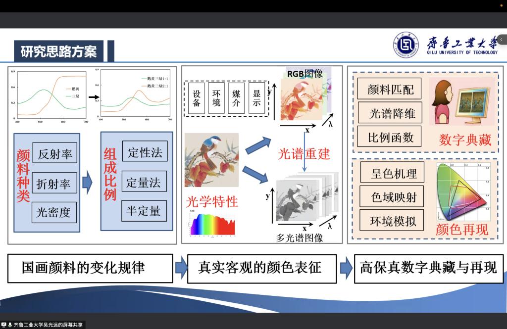 11月21日,應(yīng)輕工科學(xué)與工程學(xué)院和研究生院邀請,齊魯工業(yè)大學(xué)吳光遠(yuǎn)副教授做客我?!拔囱雽?dǎo)師論壇”,作了題為“國畫藝術(shù)品高保真數(shù)字典藏及再現(xiàn)研究”的線上學(xué)術(shù)報告。報告會由輕工學(xué)院印刷工程系主任遲聰聰主持,學(xué)院相關(guān)專業(yè)教師、研究生及本科生聆聽了本次報告。