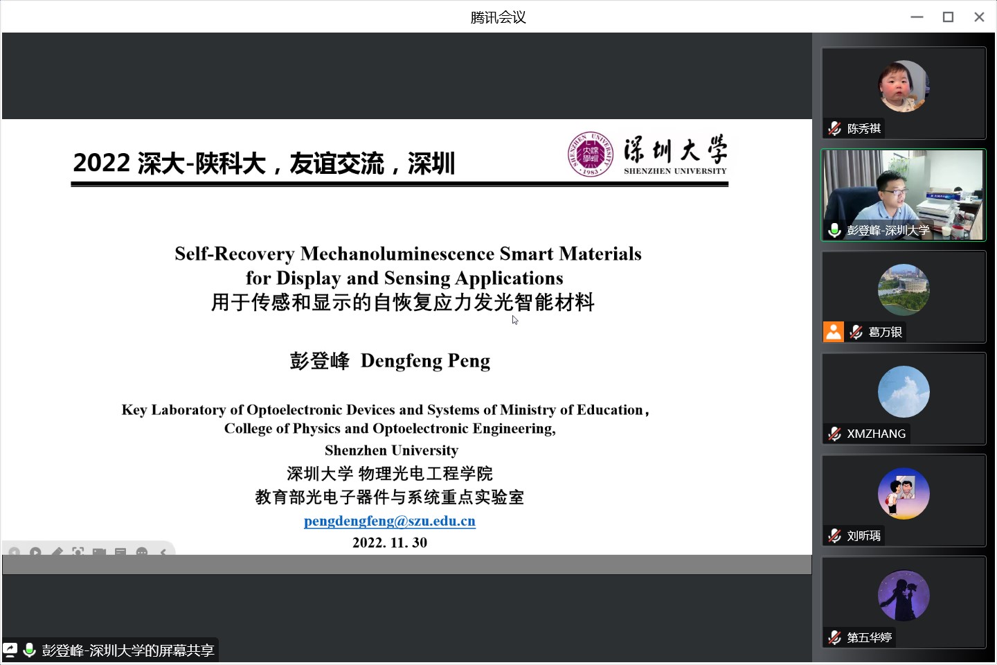 11月30日,應我校材料科學與工程學院、科技處及前沿院邀請,深圳大學彭登峰教授做客我?!扒把乜茖W報告”,為我校師生帶來主題為“用于傳感和顯示的自恢復應力發(fā)光智能材料”的學術報告。報告會由材料學院副院長王卓教授主持,材料學院相關專業(yè)教師及研究生參加了此次報告會。