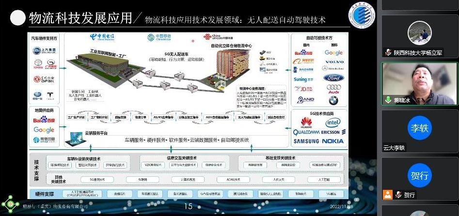 12月2日,應(yīng)機電工程學(xué)院邀請,重慶市國際物流口岸服務(wù)協(xié)會副秘書長、重慶精驛行供應(yīng)鏈管理有限公司總經(jīng)理、高級經(jīng)濟(jì)師蔣嘯冰做客我校“未央導(dǎo)師論壇”,在線為我校師生作了題為“我國物流科技發(fā)展現(xiàn)狀與內(nèi)在邏輯”的學(xué)術(shù)報告,報告由機電學(xué)院副院長楊立軍主持,機電學(xué)院相關(guān)專業(yè)教師、研究生和高年級本科生參加此次學(xué)術(shù)報告。