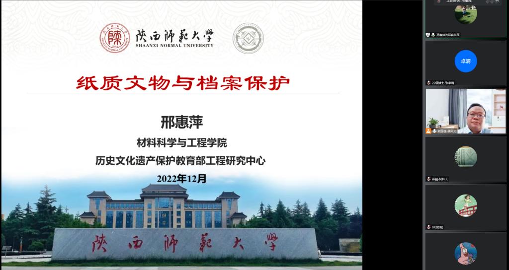 應(yīng)輕工科學(xué)與工程學(xué)院和研究生院邀請(qǐng),陜西省產(chǎn)品質(zhì)量監(jiān)督檢驗(yàn)研究院建材輕工所副所長(zhǎng)王思宇、陜西師范大學(xué)副教授邢惠萍分別于12月10日、12月9日做客我?!拔囱雽?dǎo)師論壇”,分別作了題為“食品包裝材料質(zhì)量安全檢測(cè)技術(shù)”“紙質(zhì)文物與檔案保護(hù)”的線上學(xué)術(shù)報(bào)告。學(xué)院相關(guān)專業(yè)教師、研究生及本科生參加了報(bào)告會(huì)。