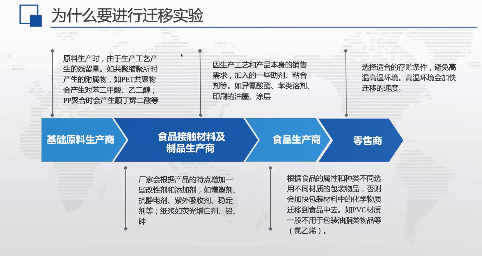 王思宇從實(shí)例出發(fā),闡述了包裝材料的滲透與遷移機(jī)理,通過該機(jī)理分析現(xiàn)行國(guó)標(biāo)中對(duì)食品材料如何進(jìn)行安全性評(píng)價(jià),以及目前對(duì)于食品包裝材料檢測(cè)標(biāo)準(zhǔn)及其發(fā)展趨勢(shì)。隨后他介紹了化學(xué)品在包裝中的物質(zhì)遷移實(shí)驗(yàn)和我國(guó)目前在食品接觸材料與法規(guī)方面的研究進(jìn)展。