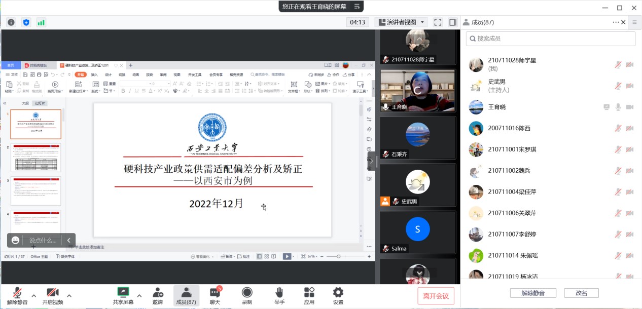 應(yīng)我校經(jīng)濟(jì)與管理學(xué)院和研究生院邀請(qǐng),12月13日晚,西安工業(yè)大學(xué)經(jīng)濟(jì)管理學(xué)院王育曉教授做客我?!拔囱雽?dǎo)師論壇”,做了題為“硬科技產(chǎn)業(yè)政策供需適配偏差分析及矯正——以西安市為例”的講座,經(jīng)管學(xué)院教師及全體研究生參加報(bào)告會(huì)。