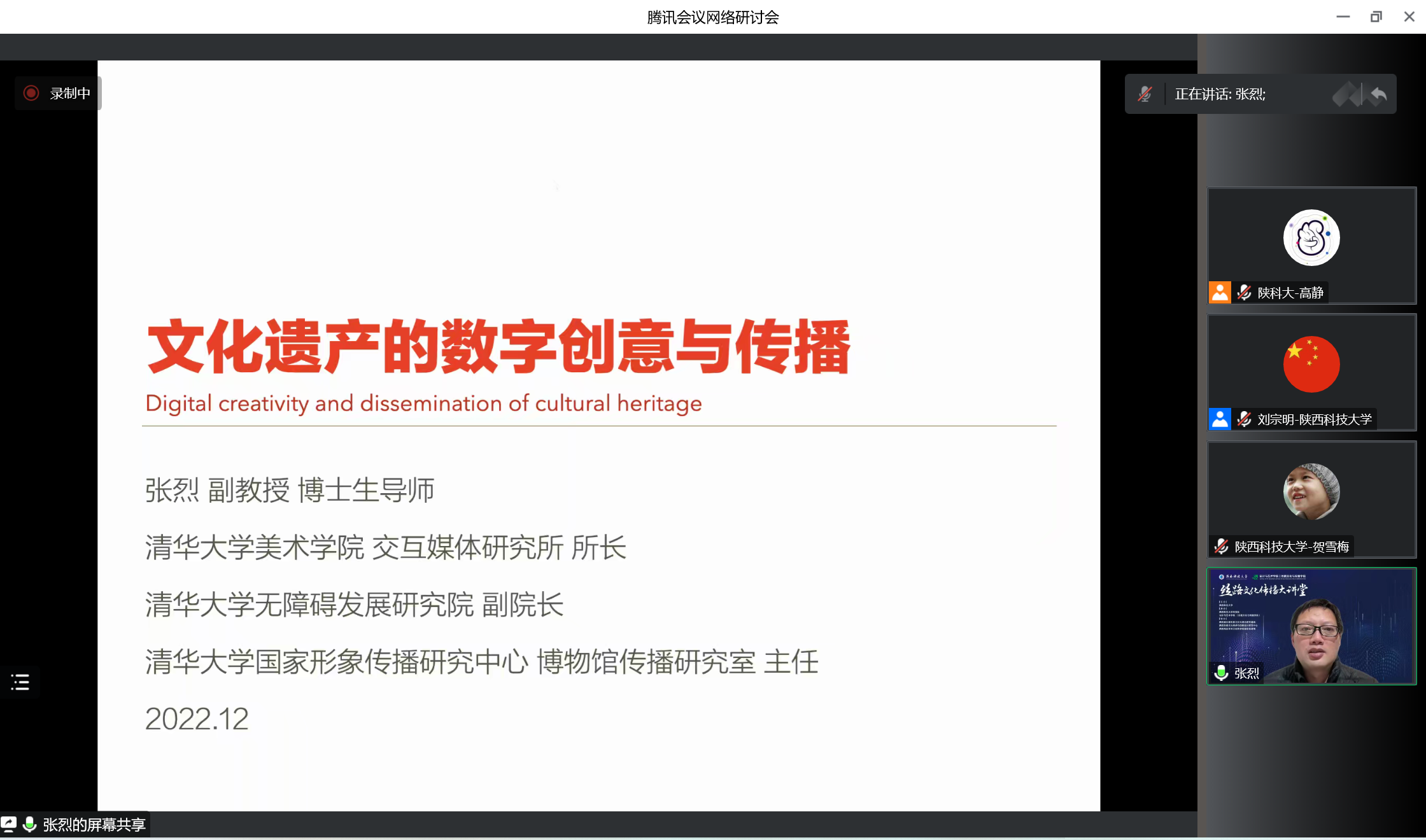 12月16日晚,應(yīng)我校設(shè)計與藝術(shù)學(xué)院(絲路文化與傳播學(xué)院)、科技處及前沿院邀請,清華大學(xué)美術(shù)學(xué)院張烈教授做客我?!扒把乜茖W(xué)報告”,作了題為“文化遺產(chǎn)的數(shù)字創(chuàng)意與傳播”的學(xué)術(shù)報告。報告會由設(shè)藝學(xué)院院長劉宗明教授主持,設(shè)藝學(xué)院相關(guān)專業(yè)師生及全國藝術(shù)設(shè)計同行300余人參加此次報告會。