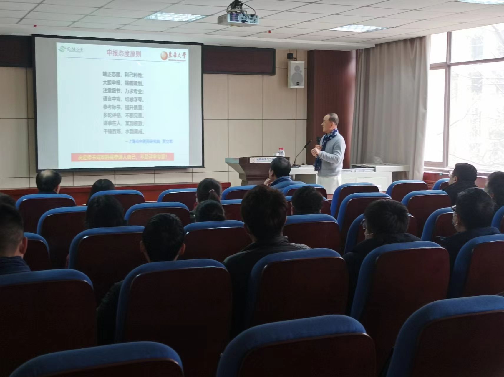 江莞教授首先介紹了自己主持的自然基金項目和參與評審的自然基金項目,提出自然科學基金的特點重在創(chuàng)新性、可行性和工作基礎(chǔ)三個方面。其次,江莞教授介紹了自然科學基金項目申請流程和基金的評審原則。然后,江莞教授以自己申報的項目為例講述了如何凝練科學問題寫好基金申請書,并分享了他科研道路上的豐富經(jīng)驗,給大家詳細列舉了撰寫申報書的要點和技巧。