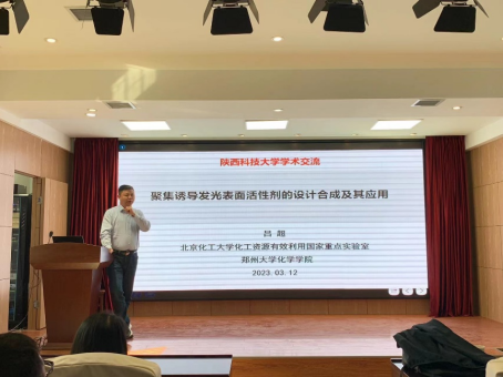 3月12日15點(diǎn),應(yīng)我校輕工科學(xué)與工程學(xué)院(柔性電子學(xué)院)、科技處及前沿院邀請,北京化工大學(xué)/鄭州大學(xué)呂超教授和北京化工大學(xué)田銳副教授分別做客我?!扒把乜茖W(xué)報(bào)告”和“未央導(dǎo)師論壇”,做了題為“聚集誘導(dǎo)發(fā)光表面活性劑的設(shè)計(jì)合成及其應(yīng)用”和“基于化學(xué)發(fā)光對聚合物降解過程的原位分析及路徑檢測”的學(xué)術(shù)報(bào)告。報(bào)告由輕工學(xué)院院長呂斌主持,學(xué)院相關(guān)專業(yè)教師、研究生參加了此次報(bào)告會。