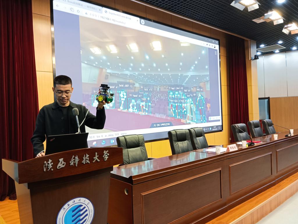 研討會后,機器人工程專業(yè)認知實習的學生在企業(yè)導師的指導下,體驗了地平線公司全新推出的旭日x3派控制板,經過一天的學習、認知和實踐,同學們親身感受到人工智能、機器人時代帶給我們的技術變革,也堅定了科技報國的決心。