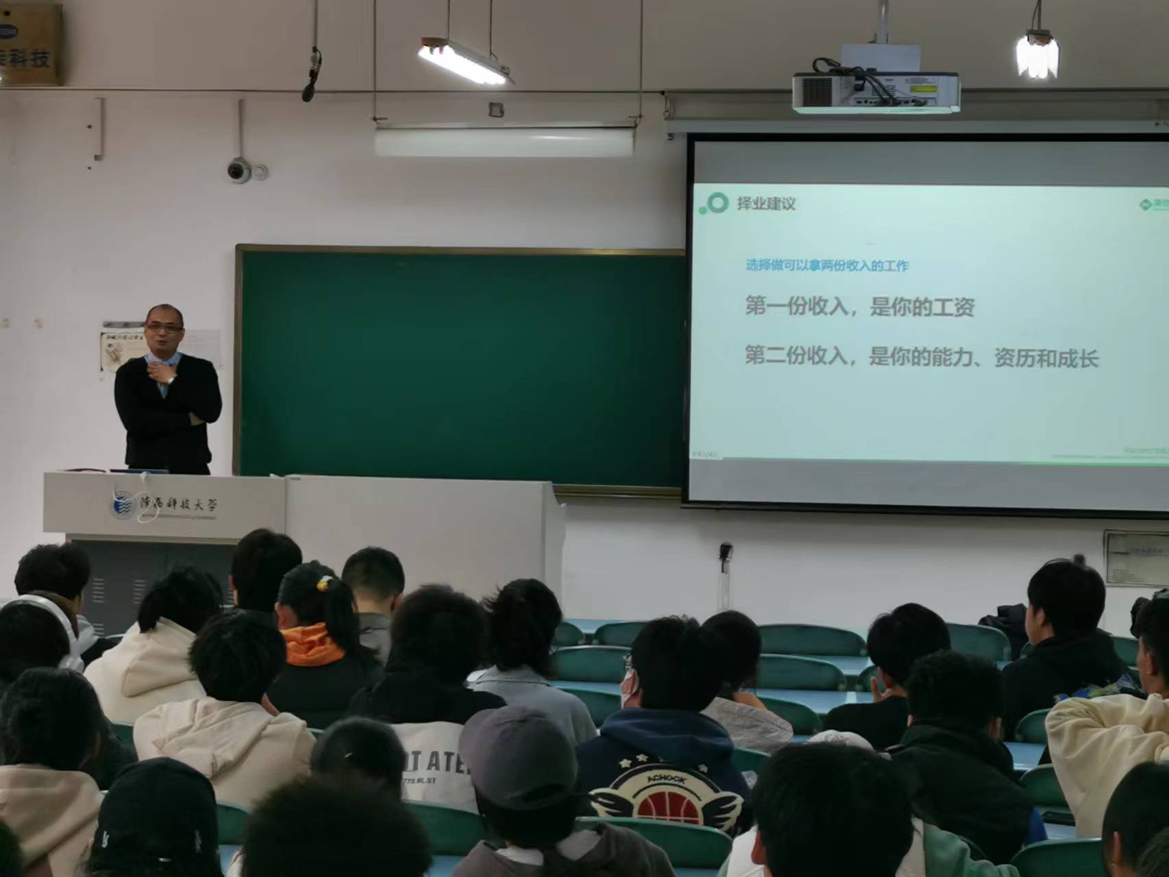 報告結(jié)束后,兩位專家與現(xiàn)場師生進行了互動交流,朱征曲就瓦楞包裝行業(yè)的產(chǎn)業(yè)鏈、生產(chǎn)和銷售模式、行業(yè)發(fā)展有利和不利因素進行了講解,江軻就奶粉包裝的組合式創(chuàng)新理念進行了詳細闡述。兩場報告內(nèi)容豐富,案例詳實,參會師生表示受益匪淺,對于廣大師生在個人職業(yè)生涯規(guī)劃以及包裝容器的創(chuàng)新設(shè)計等方面均具有很好的啟發(fā)性。