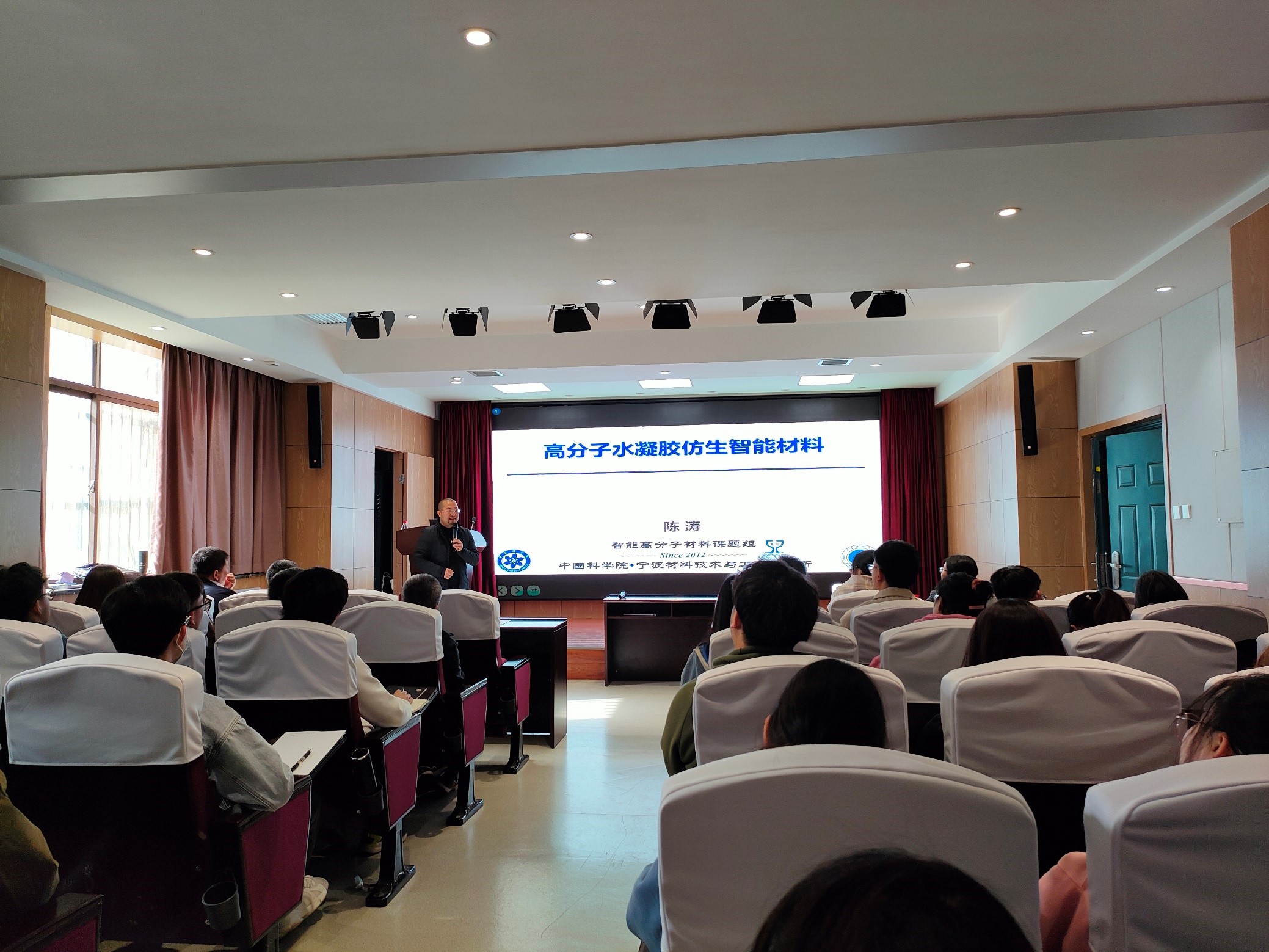 4月7日下午,應我校輕工科學與工程學院(柔性電子學院)、科技處及前沿院邀請,中國科學院寧波材料技術與工程研究所陳濤研究員做客我?!扒把乜茖W報告”,作了題為“高分子水凝膠仿生智能材料”的學術報告。報告會由輕工學院院長呂斌主持,學院相關專業(yè)教師、研究生參加了此次報告會。