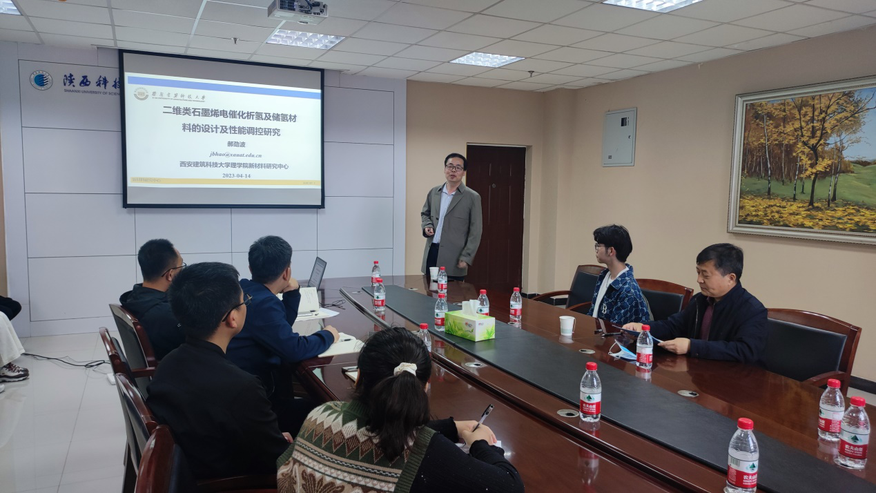 4月14日下午,應我校文理學院和研究生院邀請,西安建筑科技大學郝勁波副教授做客我?!拔囱雽熣搲?,作了題為“二維類石墨烯電催化析氫及儲氫材料的設計及性能調(diào)控研究”的學術報告。報告由文理學院院長劉建科主持,文理學院及我校相關專業(yè)師生參加了此次報告會。