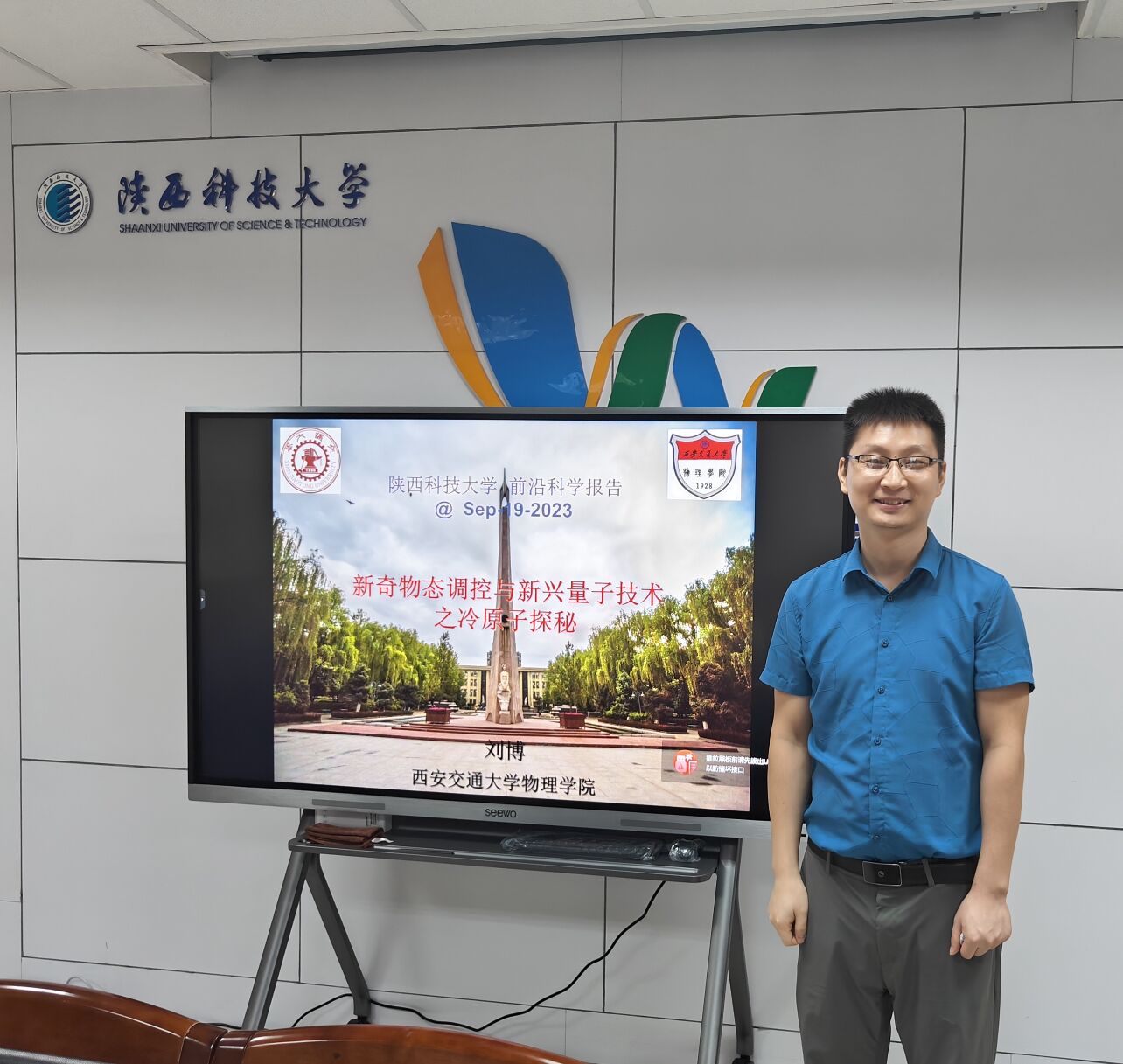 9月19日上午,應(yīng)我校文理學(xué)院、科技處及前沿院邀請(qǐng),西安交通大學(xué)劉博教授做客我校“前沿科學(xué)報(bào)告”,作了題為“新奇物態(tài)調(diào)控與新興量子技術(shù)之冷原子探秘”的學(xué)術(shù)報(bào)告。報(bào)告會(huì)由文理學(xué)院張曉斐教授主持,文理學(xué)院物理系相關(guān)專業(yè)教師、研究生參加了此次報(bào)告會(huì)。
