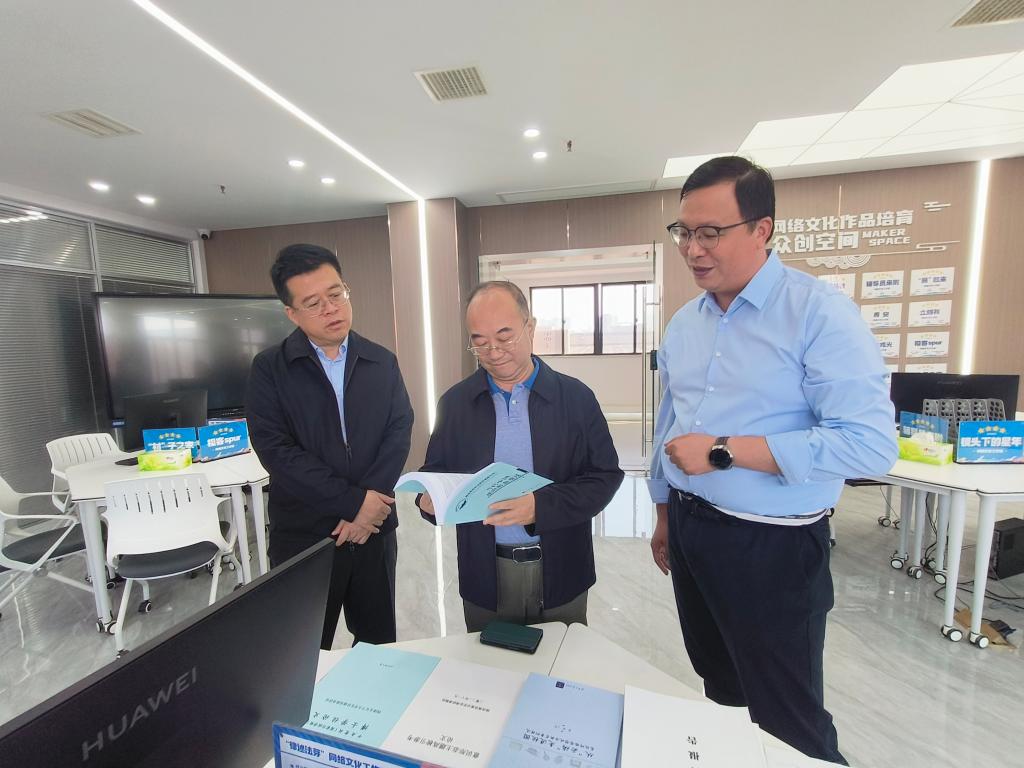 報告結(jié)束后,郭強陪同馮剛教授參觀了陜西高校網(wǎng)絡(luò)思想政治工作中心。馮剛教授對中心的建設(shè)給予了充分肯定,并對中心今后的工作突破點給出了指導(dǎo)性意見。