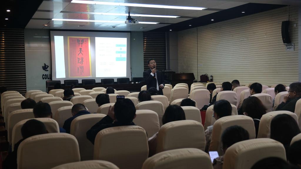 10月18日下午,為全面推動(dòng)課程思政建設(shè),提升教師課程思政改革能力,落實(shí)立德樹人根本任務(wù),在學(xué)校教務(wù)處的支持下,電子信息與人工智能學(xué)院邀請齊魯工業(yè)大學(xué)(山東省科學(xué)院)電子電氣與控制學(xué)部肖中俊教授作了題為《課程思政賦能專業(yè)課程的設(shè)計(jì)思路與方法》的報(bào)告。電智學(xué)院院長馬令坤、副院長雷濤以及全院教師參加了本次報(bào)告會,報(bào)告由電智學(xué)院院長助理任喜偉主持。