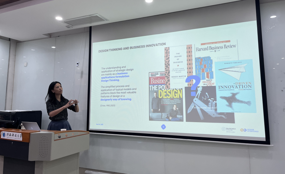 10月23日,應(yīng)我校設(shè)計(jì)與藝術(shù)學(xué)院(絲路文化與傳播學(xué)院)邀請,米蘭理工大學(xué)副教授裴雪做客我?!拔囱雽?dǎo)師論壇”,作了題為“設(shè)計(jì)驅(qū)動(dòng)戰(zhàn)略:從企業(yè)創(chuàng)新到系統(tǒng)性轉(zhuǎn)型”的學(xué)術(shù)報(bào)告。報(bào)告會(huì)由設(shè)藝學(xué)院院長劉宗明教授主持,相關(guān)專業(yè)青年教師及研究生等參加了此次報(bào)告會(huì)。