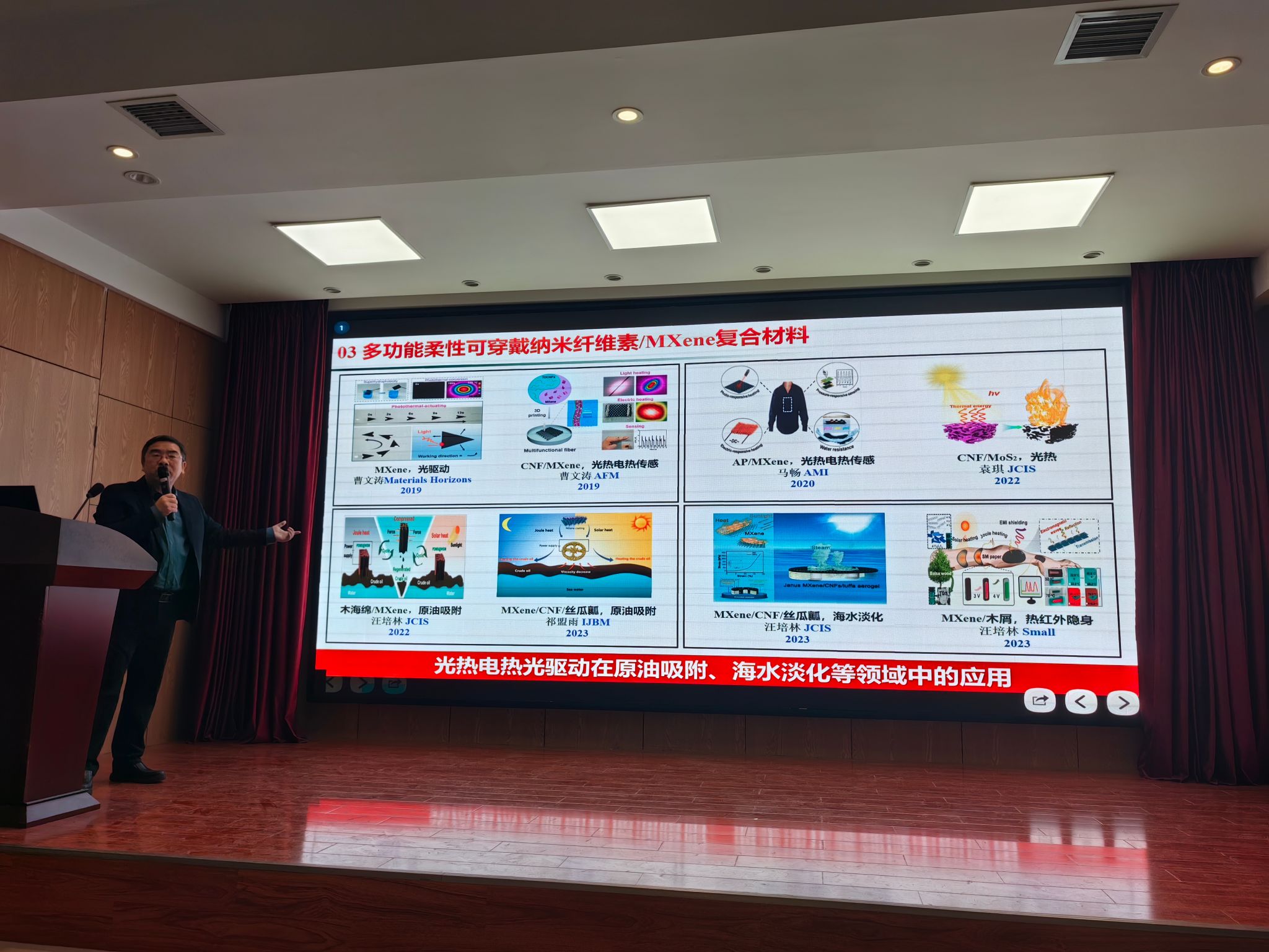 近日,應(yīng)我校輕工科學(xué)與工程學(xué)院(柔性電子學(xué)院)和研究生院邀請,北京林業(yè)大學(xué)馬明國教授做客我?!拔囱雽?dǎo)師論壇”,在輕工學(xué)院學(xué)術(shù)報告廳作了題為“多功能柔性可穿戴納米纖維素/MXene復(fù)合材料研究”的學(xué)術(shù)報告。報告由輕工學(xué)院副院長劉國棟主持,學(xué)院部分教師及相關(guān)專業(yè)研究生參加了本次報告會。