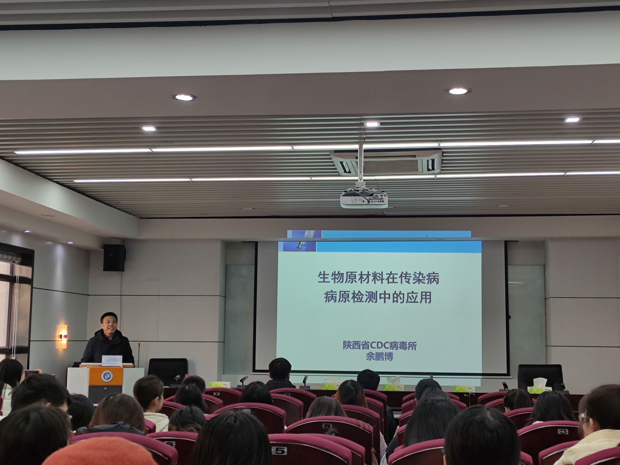 近日,應(yīng)??萍继幒褪称房茖W(xué)與工程學(xué)院(生物與醫(yī)藥學(xué)院)邀請,陜西省疾病預(yù)防控制中心病毒所所長余鵬博教授作了題為“生物原材料在傳染病病原檢測中的應(yīng)用”的學(xué)術(shù)報(bào)告。食品學(xué)院部分教師和全體研究生參加本次報(bào)告會,報(bào)告會由食品學(xué)院院長助理劉寧主持。
