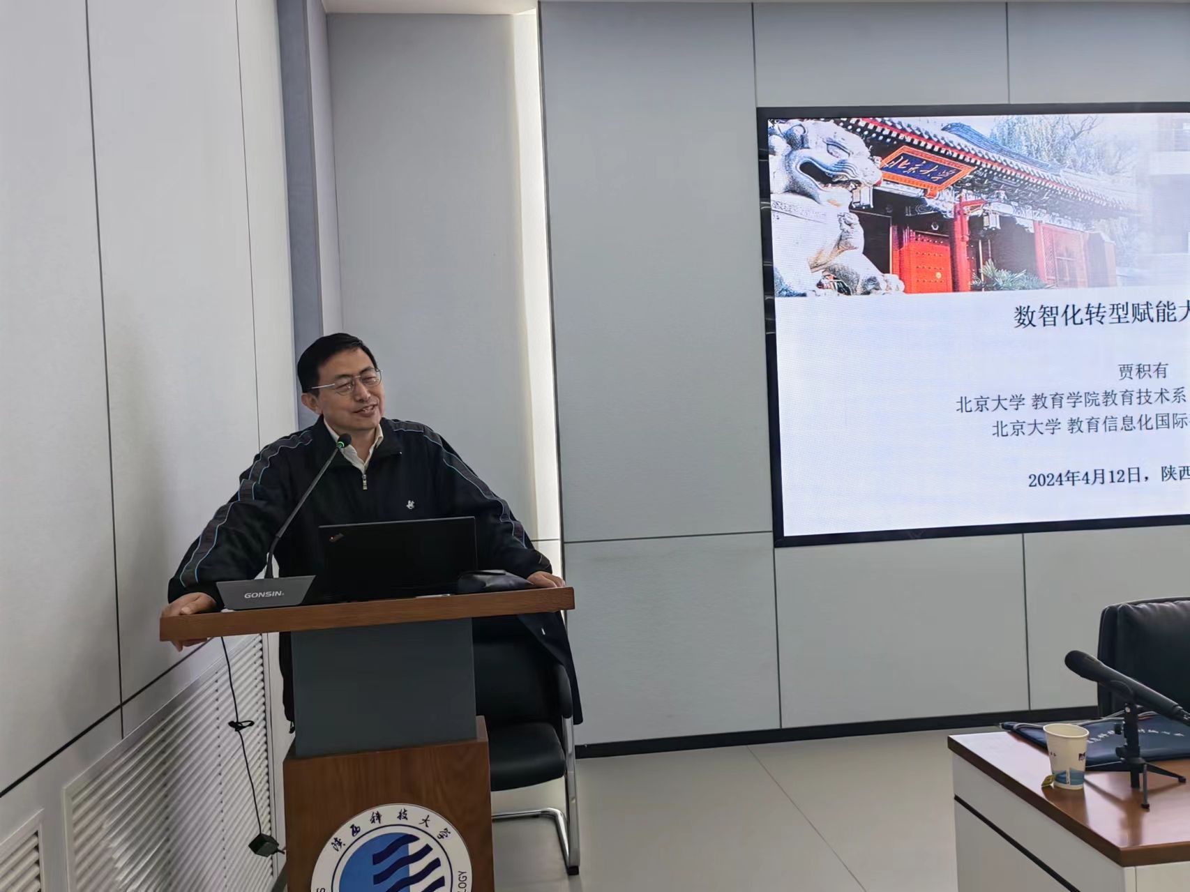 4月12日,教師發(fā)展中心邀請北京大學(xué)教育學(xué)院博士生導(dǎo)師賈積有教授做客我?!懊麕熣搲保髁祟}為《數(shù)智化轉(zhuǎn)型賦能大學(xué)教學(xué)》的學(xué)術(shù)講座,我校70余名教師聆聽了報告。文化與教育學(xué)院楊曉教授主持本次報告會。