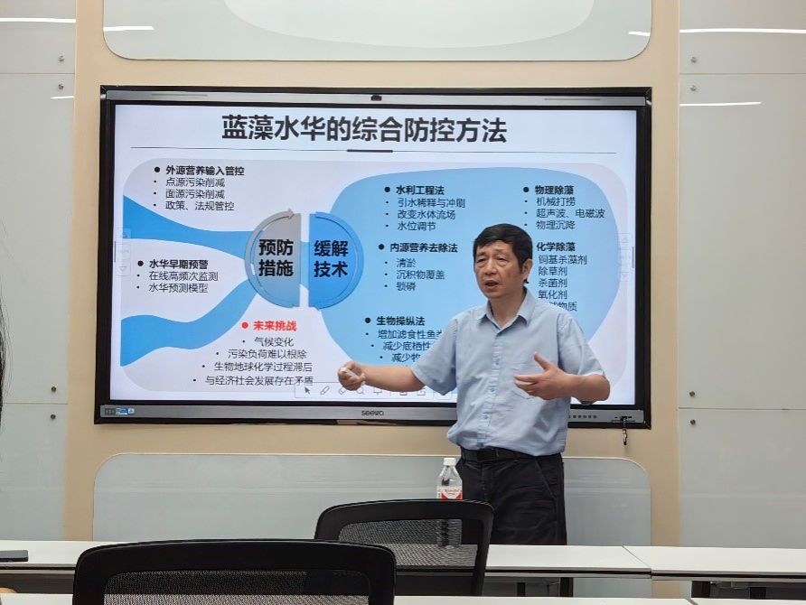 7月12日上午,應(yīng)環(huán)境科學(xué)與工程學(xué)院污染控制與環(huán)境健康團(tuán)隊(duì)邀請(qǐng),中國(guó)科學(xué)院水生生物研究所宋立榮研究員做客我?!扒把乜茖W(xué)報(bào)告”,報(bào)告題目為“藍(lán)藻水華暴發(fā)的生態(tài)學(xué)機(jī)制和控制技術(shù):進(jìn)展及展望”,報(bào)告在新實(shí)訓(xùn)樓B205至博會(huì)議室2舉行。報(bào)告會(huì)由環(huán)境學(xué)院副院長(zhǎng)李成濤教授主持,環(huán)境學(xué)院及食品學(xué)院相關(guān)教師與研究生參加了此次報(bào)告會(huì)。