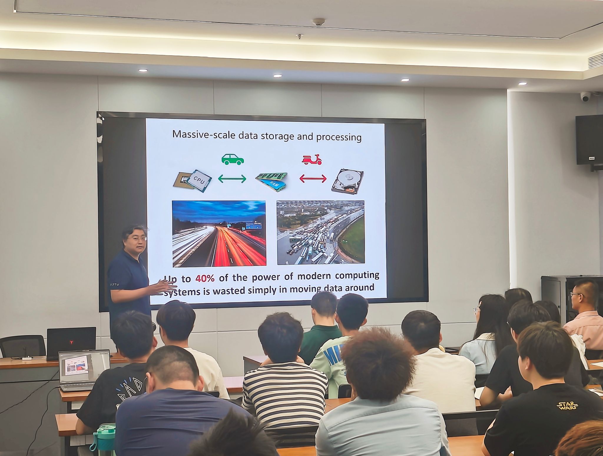 張偉教授長期從事相變與非晶材料方面的研究,在相變存儲器與類腦計算的材料機理與制備工藝方面取得重要進展。在此次報告中,張偉教授首先從相變存儲材料的材料學基礎出發(fā),詳細介紹了相變材料的結(jié)晶化與非晶化機理,提出其在數(shù)據(jù)存儲、通用存儲器、神經(jīng)元計算以及人工智能硬件發(fā)展方面的核心作用,并從材料設計的角度指出了相變存儲芯片工業(yè)化過程中尚需解決的關鍵問題。此外,張偉教授針對青年學者在高水平論文寫作方面的問題與困惑,以自身寫作經(jīng)驗分享了寫作特點和寫作范式,并結(jié)合具體示例論文闡述了寫作的思路、存在問題和解決方法。最后在現(xiàn)場提問和交流環(huán)節(jié)中張偉教授為學院從事科學研究的學生答疑解惑并提出了許多中肯的建議。