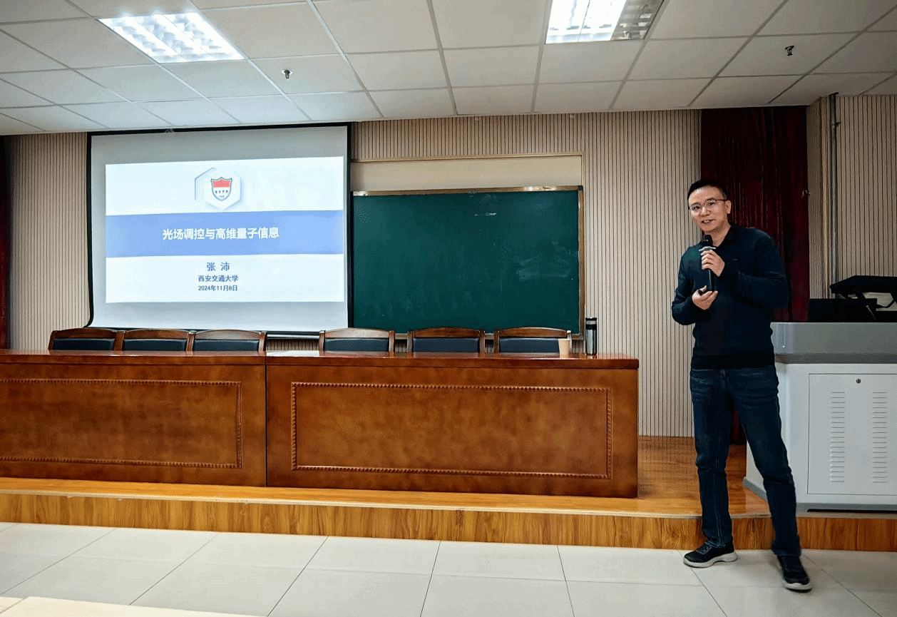 11月8日上午,應(yīng)我校物理與信息科學(xué)學(xué)院、科技處及前沿院邀請(qǐng),西安交通大學(xué)張沛教授做客我?!扒把乜茖W(xué)報(bào)告”,報(bào)告題目為“光場(chǎng)調(diào)控與高維量子信息”。報(bào)告會(huì)由物理學(xué)院副院長(zhǎng)羅道斌主持,學(xué)院相關(guān)專業(yè)教師、研究生參加了此次報(bào)告會(huì)。